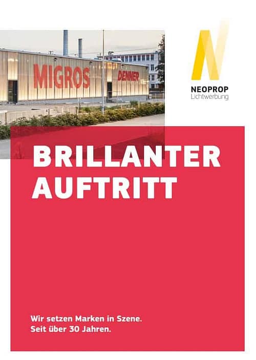 Neoprop bringt Firmen gross raus: mit der perfekten Beschriftung. Ob eine grosse Leuchtschrift am Flagshipstore oder ein einfaches Wegleitsystem, dieses Unternehmen versteht sein Handwerk. Im Auftrag der Agentur Notice durften wir für die neue Imagebroschüre passende Texte schreiben. Schön, direkt und prägnant – genau wie die Produkte. Es ist uns immer eine Freude, die hervorragende Arbeit von Schweizer KMU in Worte zu fassen.