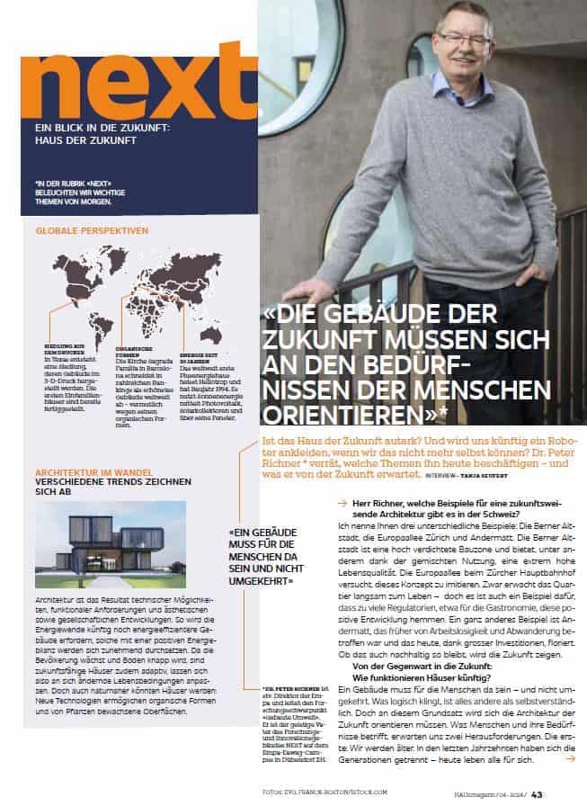 In der Rubrik „Next“ des Hausmagazins interviewen wir Expertinnen und Experten zu Zukunftsthemen. Von Architektur über Ernährung bis Mobilität: Wir fragen Fachleute, wie sie die nahe und ferne Zukunft sehen.