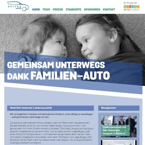 Spitex Mobile ist ein Projekt der Kinderspitex Schweiz und hilft Familien mit behinderten Kindern, mobil zu sein. Diese brauchen häufig speziell umgebaute Grossraum-Autos, in die man einen Rollstuhl oder einen Liege-Buggy verstauen kann. Spitex Mobile stellt Familien solche Autos zur Verfügung und ist dafür auf Sponsoren angewiesen. Wir haben für Website und Flyer Texte verfasst.